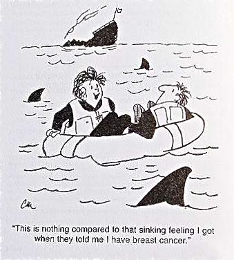 Hi Lettik, I'm glad you like the jokes. I'm hoping LOTS of folks will share more jokes, cartoons, and funny things here too that they come across or search for--I'd LOVE for many to contribute funny stuff to this thread (hint, hint! :). Actually, I wasn't much of a joke teller before I had cancer--am the kind of gal that sometimes forgets punch lines and am more on the serious side naturally. I was so shocked, sad, and overwhelmed about the cancer initially, I sure didn't "feel" like looking up funny stuff--it seemed trite to me actually. A friend who is a psychologist recc two very helpful things: that I find something funny daily and share it with somebody else and also that I do something enjoyable every day, even just a small thing when I was not feeling well. It's been really good for me to go out of my way to develop more of a sense of humor, laugh at myself more, and cultivate looking at the funny side of things. I've discovered that it's downright fun to offer something that causes others to smile or laugh-- it's sort of like sharing little gifts with others. :) It's sure worth giving a try IMHO if there are folks here who haven't tried seeking out humor daily. C'mon guys,if you haven't already, join me in posting funny stuff here! It doesn't take long at all to look up jokes and cartoons on the internet and they recycle very nicely. The best way to cheer yourself up is to try to cheer somebody else up. ~ Mark Twain Here's another joke I like: 4 Worms in Church “A minister decided that a visual demonstration would add emphasis to his Sunday sermon. Four worms were placed into four separate jars. The first worm was put into a container of alcohol. The second worm was put into a container of cigarette smoke. The third worm was put into a container of chocolate syrup. The fourth worm was put into a container of good clean soil. At the conclusion of the sermon, the Minister reported the following results: The first worm in alcohol – Dead The second worm in cigarette smoke – Dead Third worm in chocolate syrup – Dead Fourth worm in good clean soil – Alive . So the Minister asked the congregation - What did you learn from this demonstration? Maxine was sitting in the back, quickly raised her hand and said, ‘As long as you drink, smoke, and eat chocolate, you won’t have worms!’ That pretty much ended the service.” |