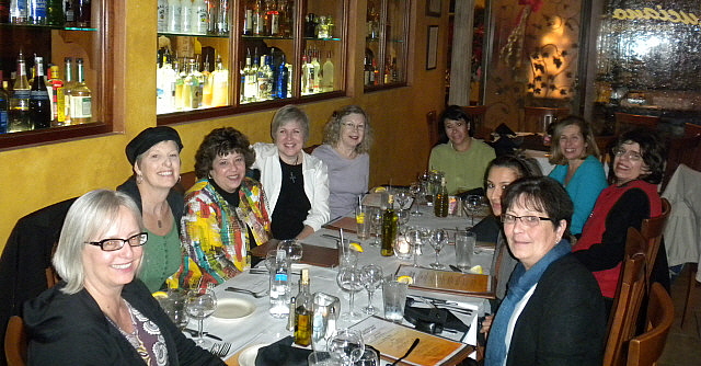 Left to right, going around the table: Chrisy, BrendaH, Sassy, Laurel, StephN, Paty, JoanM, Christine Druther, Veronica (partial face), and Sheila.