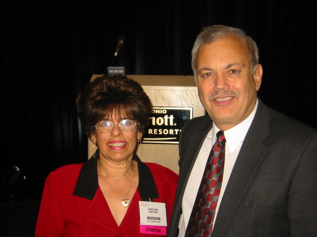 Per KarenZ's request, I am posting another photo. Christine and Dr. Dennis Slamon posing together in 2005. This was an important year in the Herceptin trials.