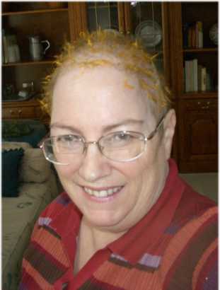 I have posted this before, but I think it deserves a rewrite because this got me through some days when I felt so ugly with out hair. I saved some of my hair when it fell out and made my own bangs. I put my hair in about eight little ponytails and cut them off when I started to get bald spots. I then took one of those pony tails and carefully layed it down over a piece of duck tape. It is best to make it pretty thick in the beginning because you will lose some of it with wearing (just like normal). I then put another piece of tape over the hair and then took it to my sewing machine. I sewed a few lines (very little stitches ) I attach it with either velcro to a hat or I wore a ear band or headband and placed it underneath and then put my hat on. Everyone would always say, your bangs look so natural and I would say of course they do "they are my own". You can buy bangs (synthetic) but I preferred my own. I just washed my again the other day and let them air dry and I saw that my natural wave was still there and had to get out my flat iron. When I wore my bamgs to "Look good feel better" class, everyone was amazed at how natural they looked. The director said she was going to share my new technique into her program.